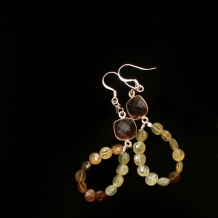 Faceted Green Garnet with Smokey Quartz Bezel Earrings